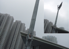 如何进入一个高层建筑照明? 桅杆吊笼沿着灯塔的柱子升高,专为那些在体育场、港口地区、机场...